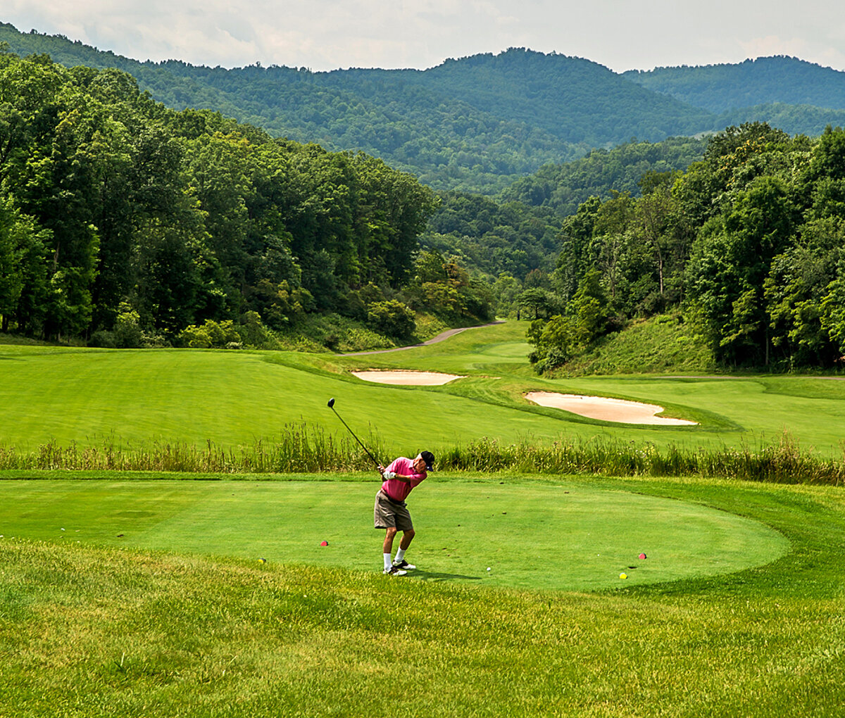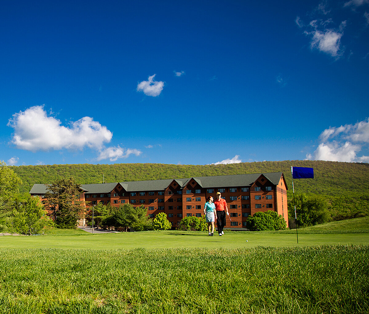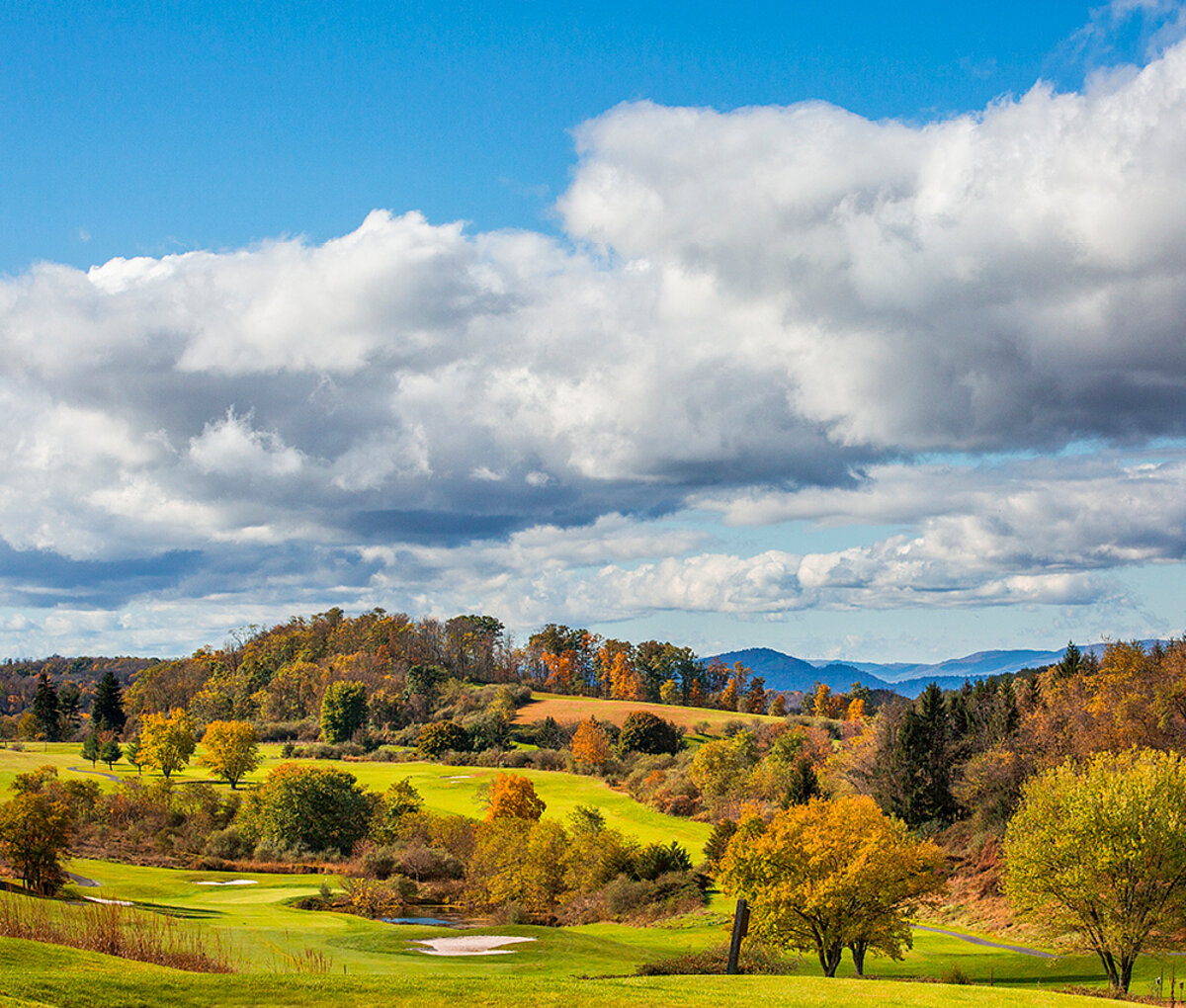 Golfers of all skill levels are drawn to the challenges and uniqueness that this 18-hole mountain course provides. The front nine is carved from mountainous, tree-lined terrain with numerous dramatic elevation changes, while the back nine is spread across expansive, gently rolling meadows. Five tee boxes per hole allow all players to adjust the level of challenge to their handicap.