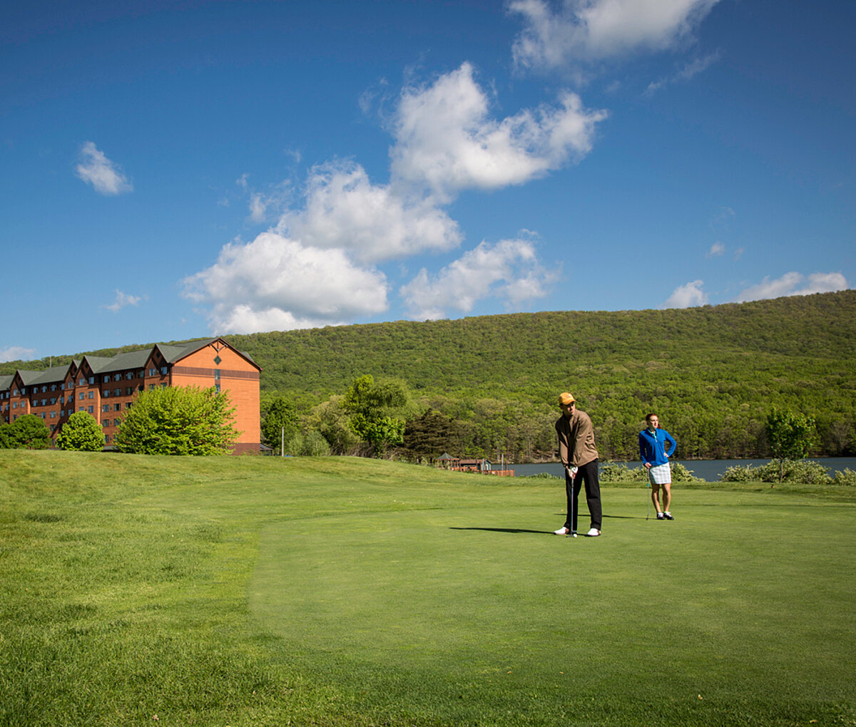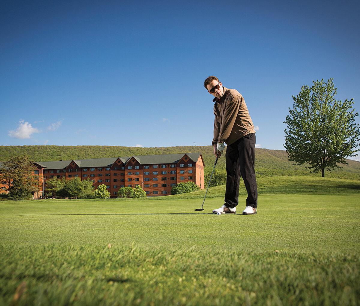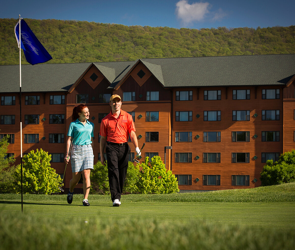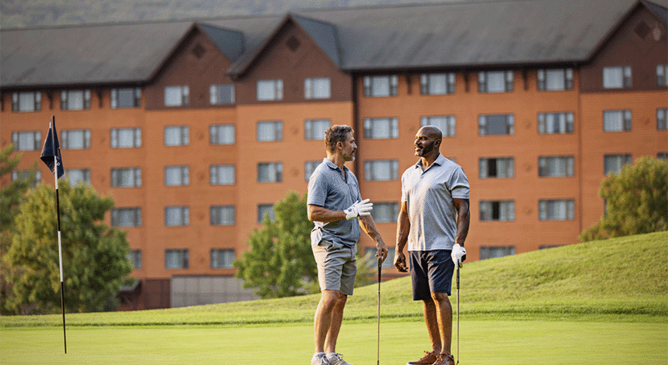 Golfers of all skill levels are drawn to the challenges and uniqueness that this 18-hole mountain course provides. The front nine is carved from mountainous, tree-lined terrain with numerous dramatic elevation changes, while the back nine is spread across expansive, gently rolling meadows. Five tee boxes per hole allow all players to adjust the level of challenge to their handicap.